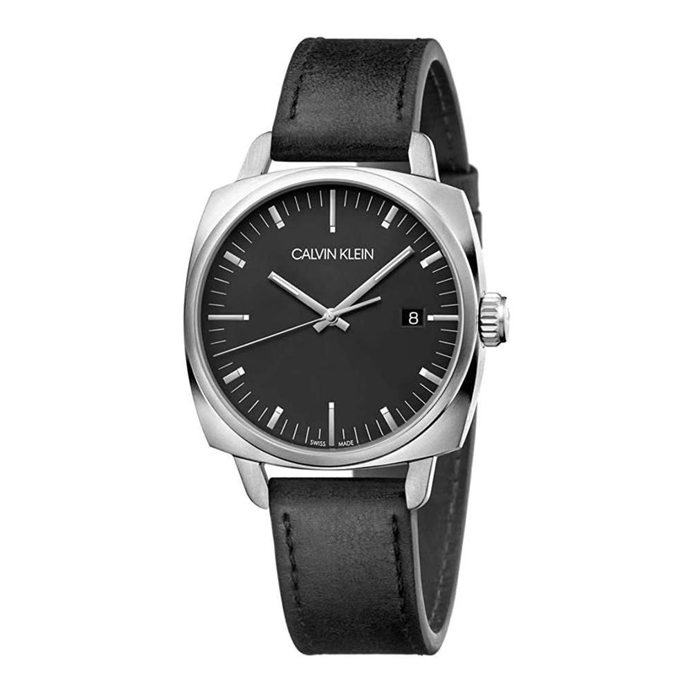 Calvin Klein Fraternity K9N111C1 Herrenuhr – Edelstahlgehäuse Silber – Lederarmband Schwarz – Analoge Anzeige – Quarzuhrwerk