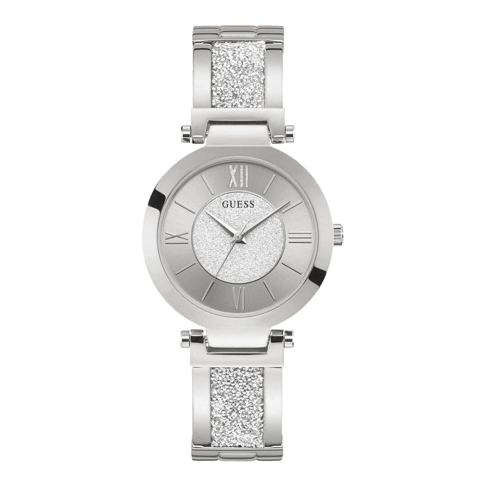 - Edelstahlgehäuse, silberfarbene Beschichtung, poliert