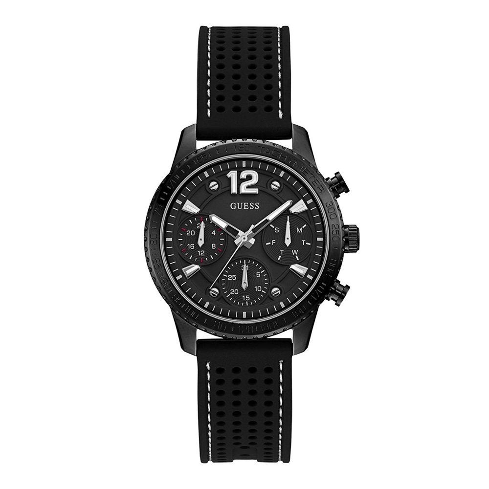 Guess Marina W1025L3 Damenuhr – Edelstahlgehäuse Schwarz – Silikonarmband Schwarz – Analoge Anzeige – Quarzuhrwerk