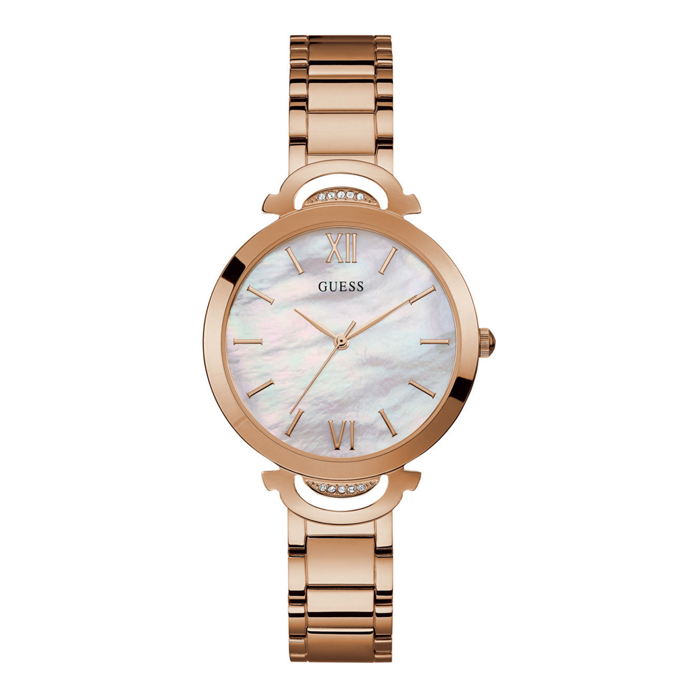 Guess Opal W1090L2 Damenuhr – Edelstahlgehäuse Rosegold – Edelstahlarmband Rosegold – Analoge Anzeige – Quarzuhrwerk