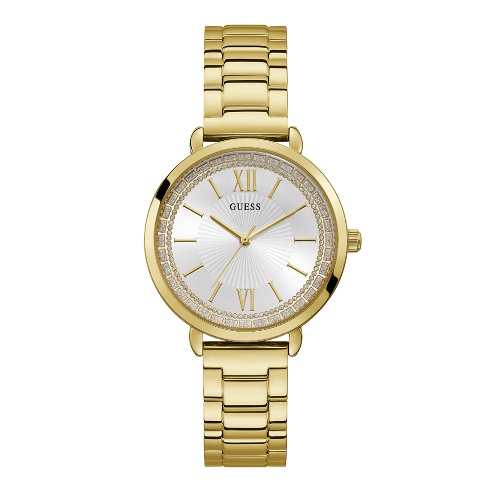 - Edelstahlgehäuse, goldfarbene Beschichtung, poliert