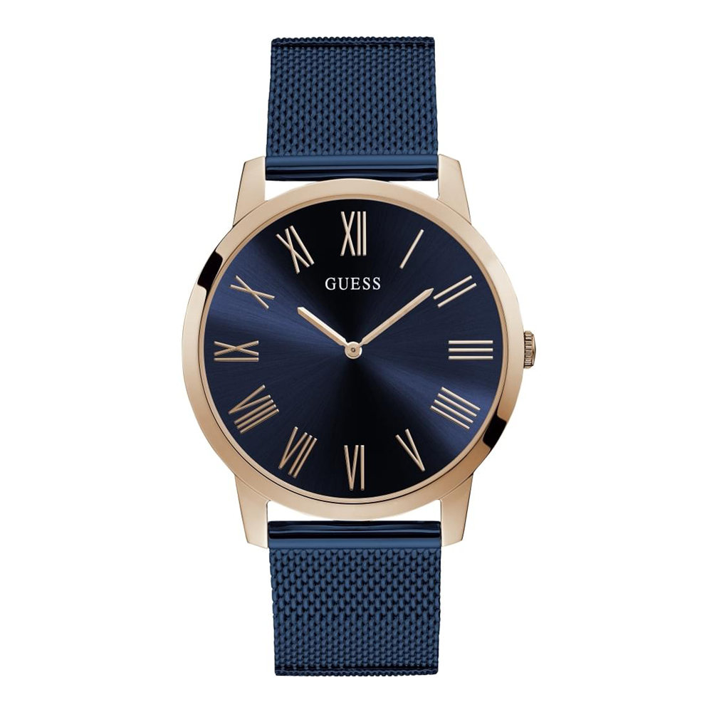 Guess Richmond W1263G4 Herrenuhr – Edelstahlgehäuse Rosegold – Edelstahlarmband Blau – Analoge Anzeige – Quarzuhrwerk