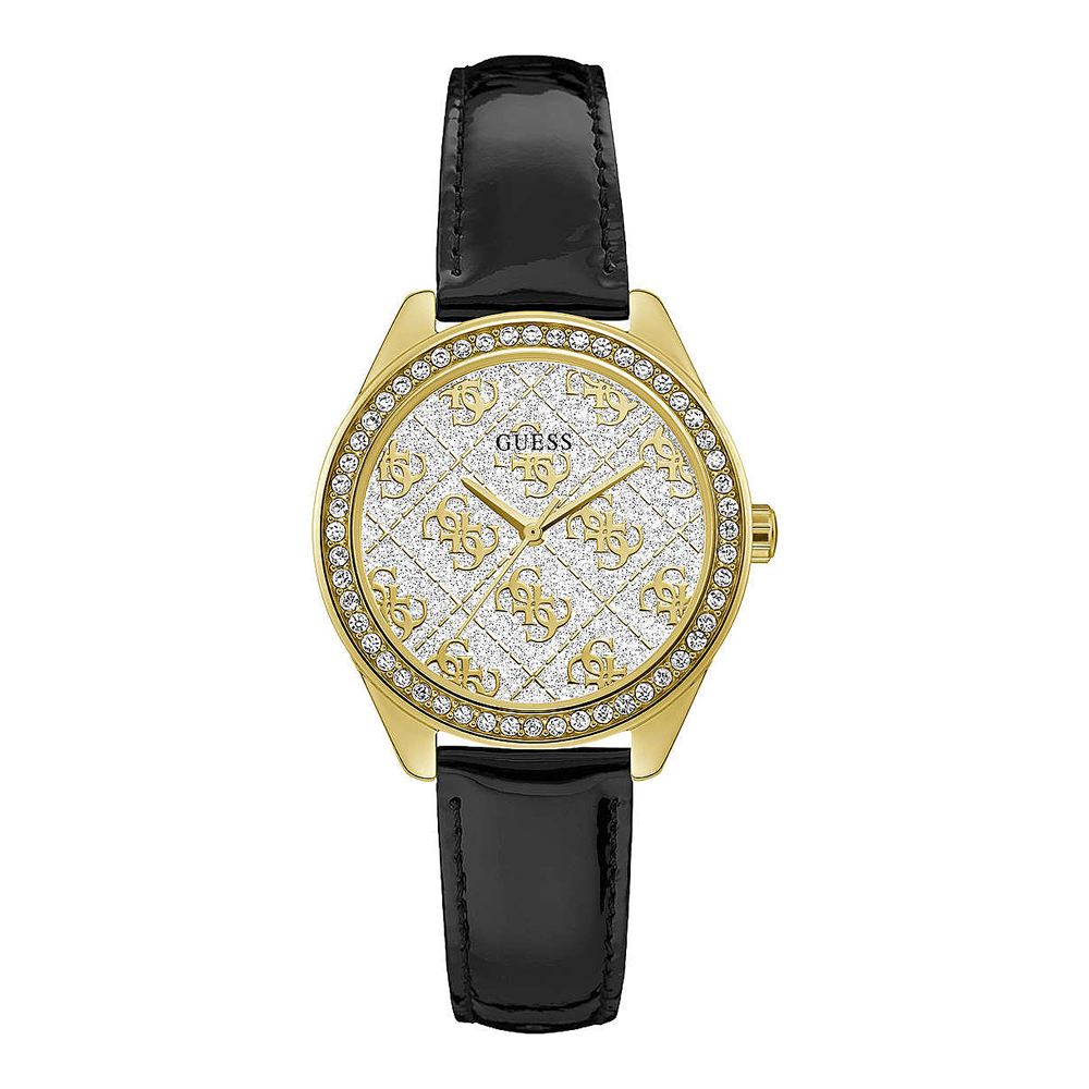 Guess Sugar GW0098L3 Damenuhr – Edelstahlgehäuse Gold – Lederarmband Schwarz – Analoge Anzeige – Quarzuhrwerk