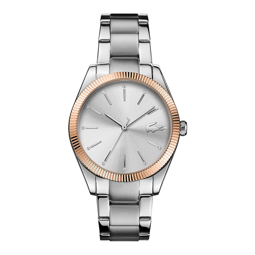 - Edelstahlgehäuse, silber- und rosegoldfarbene Beschichtung, poliert / mattiert