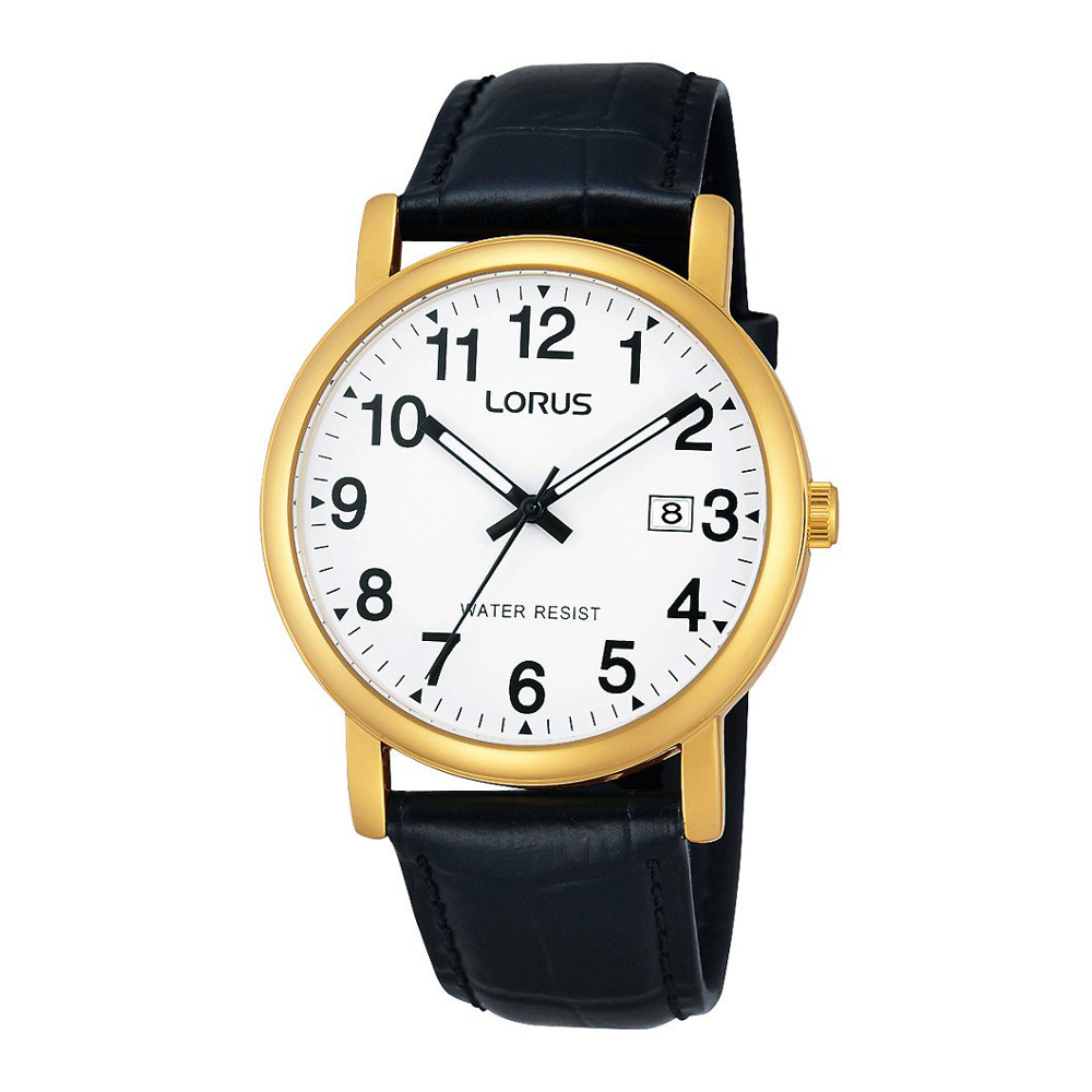 Lorus RG836CX9 Herrenuhr – Edelstahlgehäuse Gold – Lederarmband Schwarz – Analoge Anzeige – Quarzuhrwerk