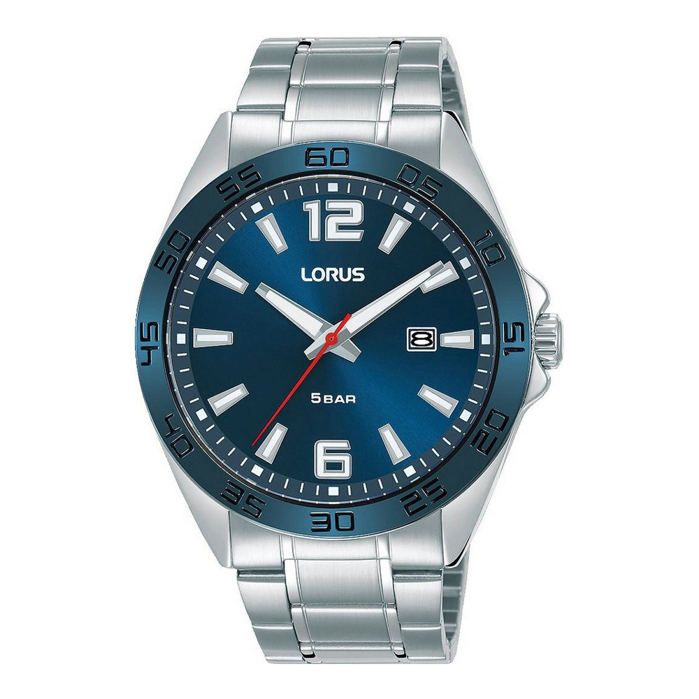 - Edelstahlgehäuse, silberfarbene Beschichtung / Blau, poliert / mattiert
