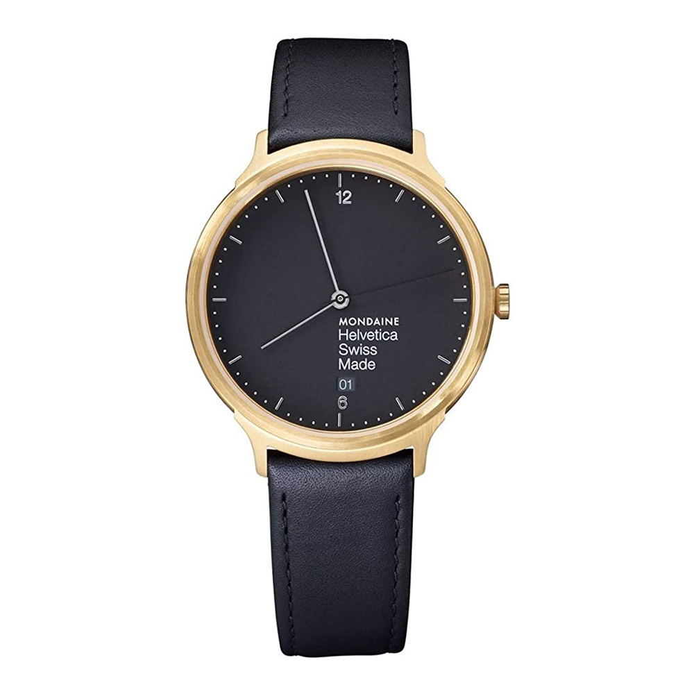 Mondaine Helvetica MH1.L2221.LB Herrenuhr – Edelstahlgehäuse Gold – Lederarmband Schwarz – Analoge Anzeige – Quarzuhrwerk