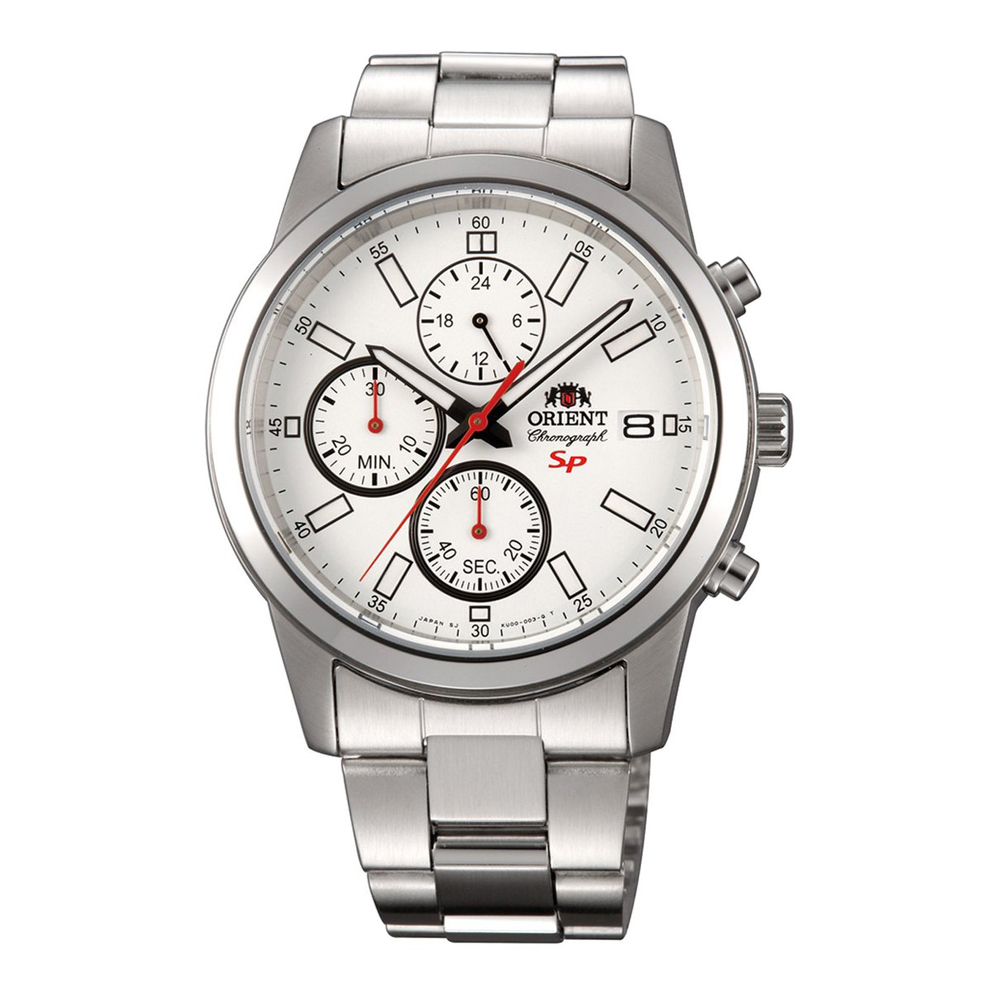 Orient Sporty FKU00003W0 Herrenuhr Chronograph – Edelstahlgehäuse Silber – Edelstahlarmband Silber – Analoge Anzeige – Quarzuhrwerk