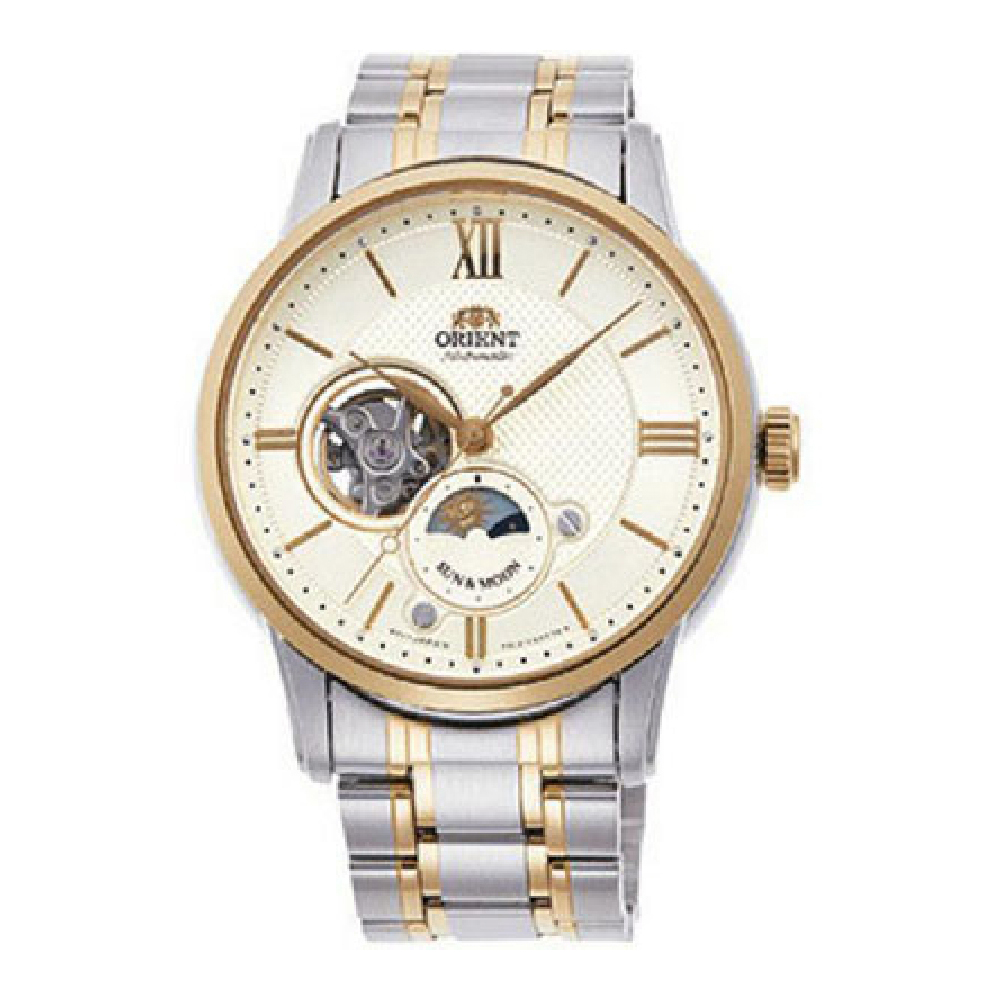 Orient Sun and Moon Automatic RA-AS0001S00B Herrenuhr – Edelstahlgehäuse Silber / Gold – Edelstahlarmband Silber / Gold – Analoge Anzeige – Automatikuhrwerk