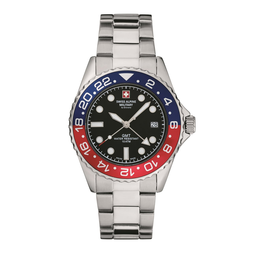 Swiss Alpine Military GMT 7052.1131SAM Herrenuhr – Edelstahlgehäuse Silber – Edelstahlarmband Silber – Analoge Anzeige – Quarzuhrwerk