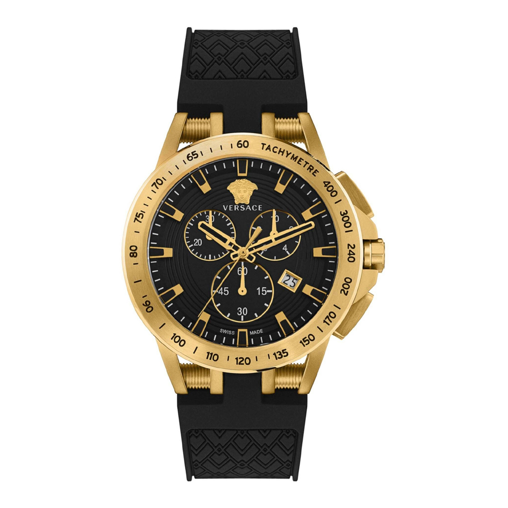 Versace VE3E00321 Sport Tech Herrenuhr Chronograph – Edelstahlgehäuse Gold – Silikonarmband Schwarz – Analoge Anzeige – Quarzuhrwerk