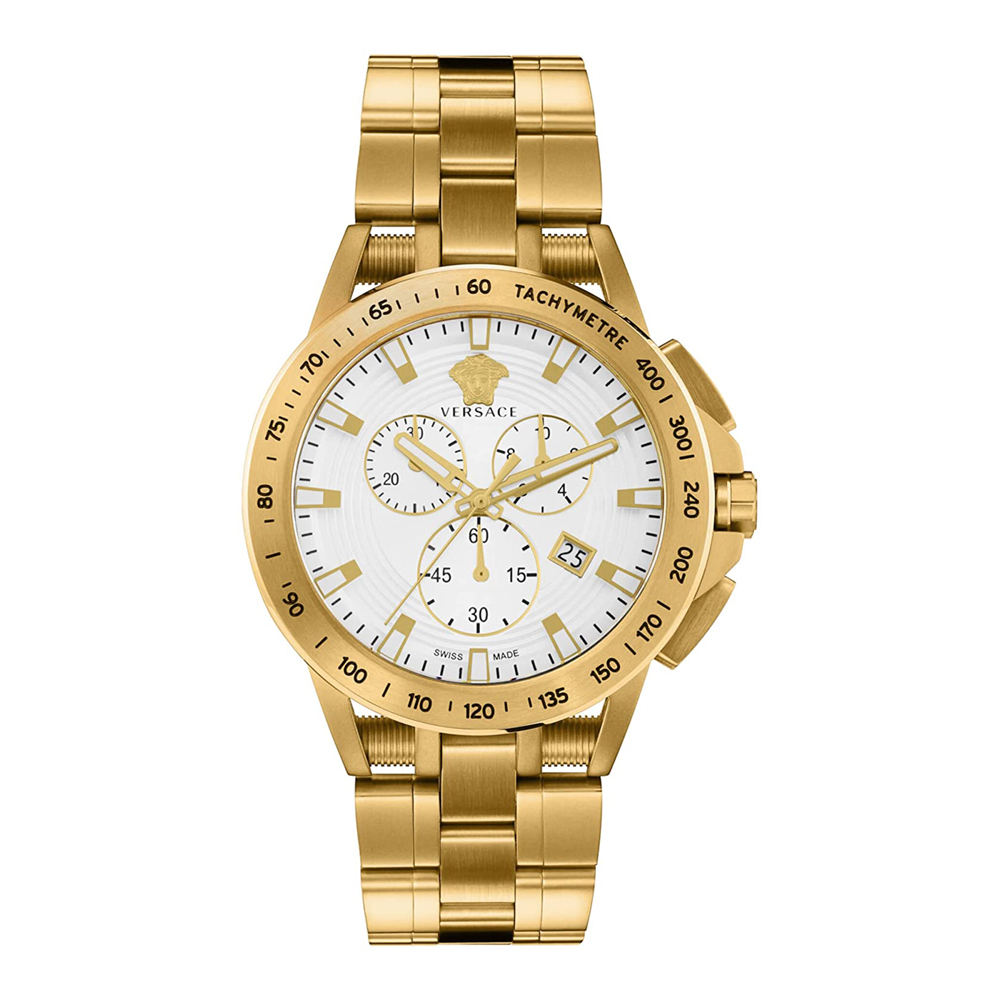 Versace VE3E00721 Sport Tech Herrenuhr Chronograph – Edelstahlgehäuse Gold – Edelstahlarmband Gold – Analoge Anzeige – Quarzuhrwerk