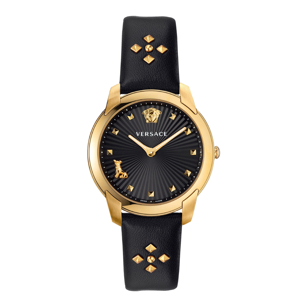 - Edelstahlgehäuse, goldfarbene Beschichtung, poliert