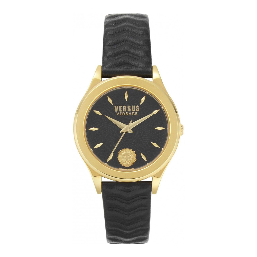 Versus VSP560318 Mount Pleasant Damenuhr – Edelstahlgehäuse Gold – Lederarmband Schwarz – Analoge Anzeige – Quarzuhrwerk