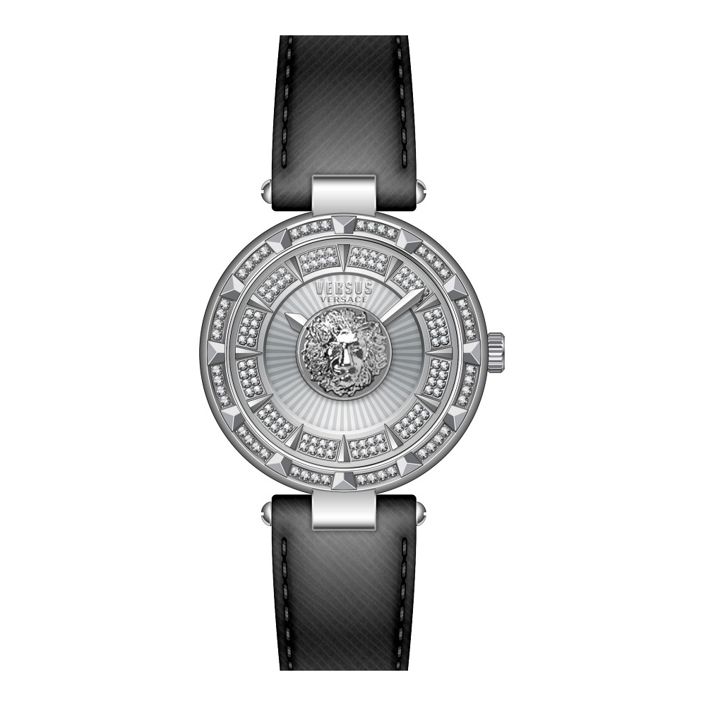 Versus VSPQ13221 Sertie N Crystal Damenuhr – Edelstahlgehäuse Silber – Lederarmband Schwarz – Analoge Anzeige – Quarzuhrwerk